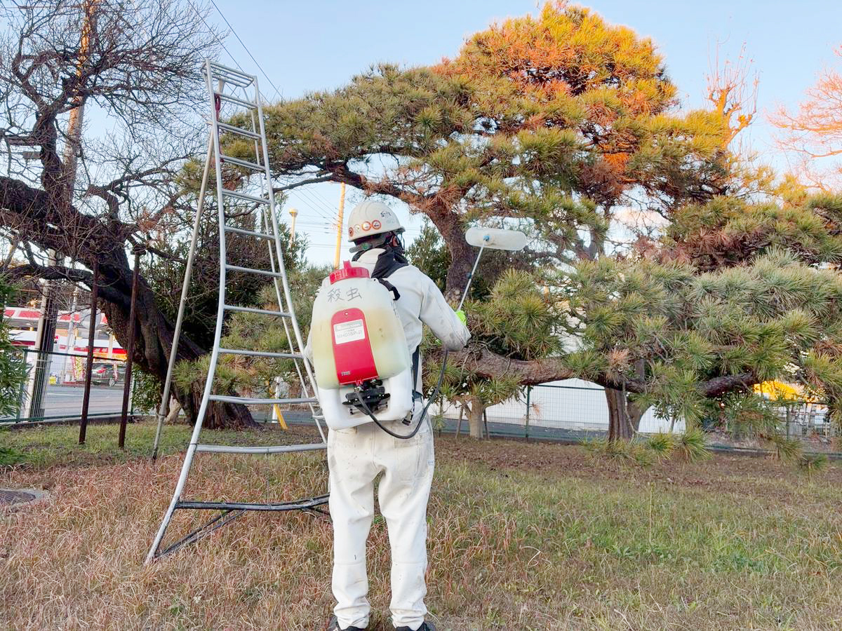 施工事例 ホーム施工事例赤松 葉ふるい病 赤松 葉ふるい病2026/02/27施工前施工後マツ葉ふるい病は、マツの針葉が枯れて落葉する病気です 病原菌の感染初期や伝染時期に殺菌剤を散布します 赤松1本 殺菌剤 15000円(税別) 施工事例一覧へ戻る農研機構様 剪定・伐... 0299-22-2458 お問い合わせフォーム